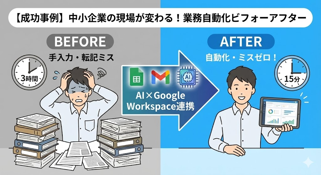 「受注から生産までの『転記・確認』で1日が終わっていませんか?中小企業がGoogle Workspace×AIで実現する、最小コストの業務自動化