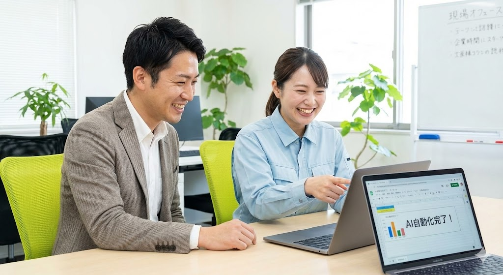 当初は「パソコンは苦手だから……」と消極的だった50代のベテラン社員の方が、3ヶ月後には自ら「AIにこう指示したらもっと楽になるのでは?」と提案してくれるようになる。